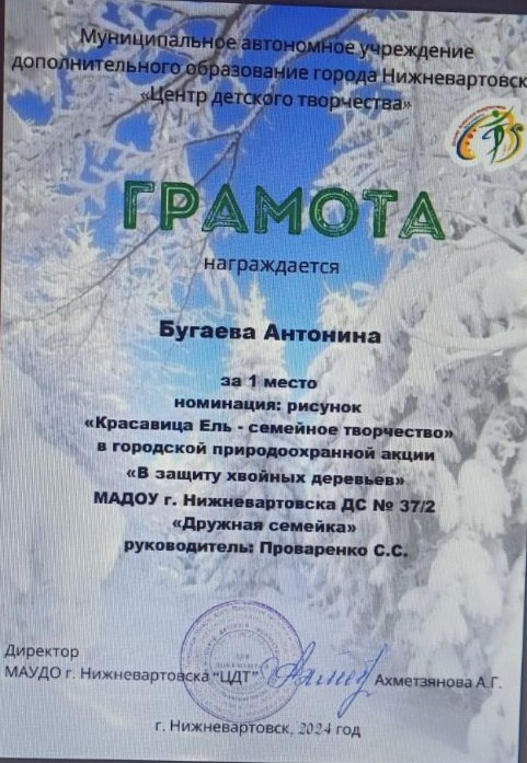 | Диплом Победителя 1 место в Первом региональном конкурсе для детей и педагогов «Моя Югра», «Ёлочка - красавица» (Просмотр) (Просмотр) (Просмотр)