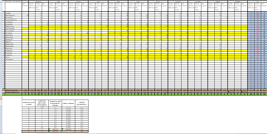 Журнал здоровья воспитанников (Просмотр)