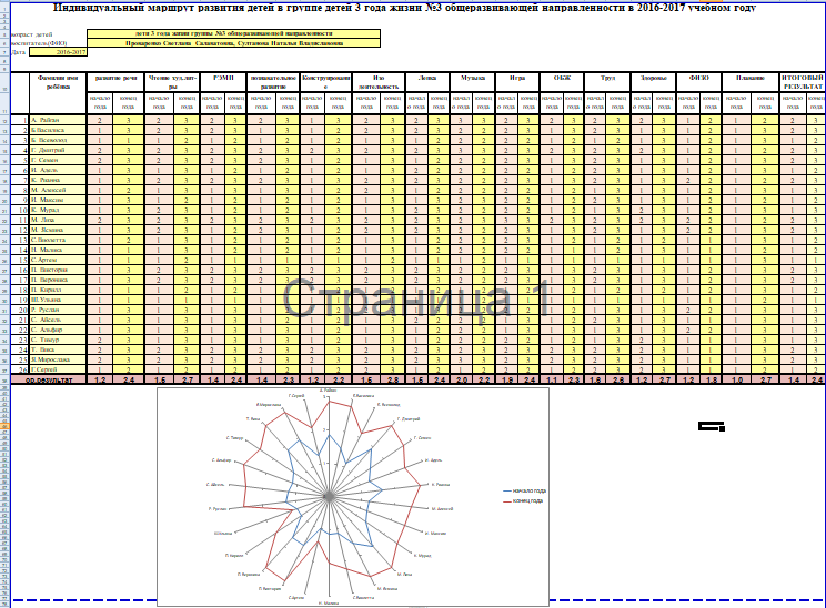 Индивидуальный маршрут развития детей 5-6 года жизни за 2017 - 2018 учебный год (Просмотр)