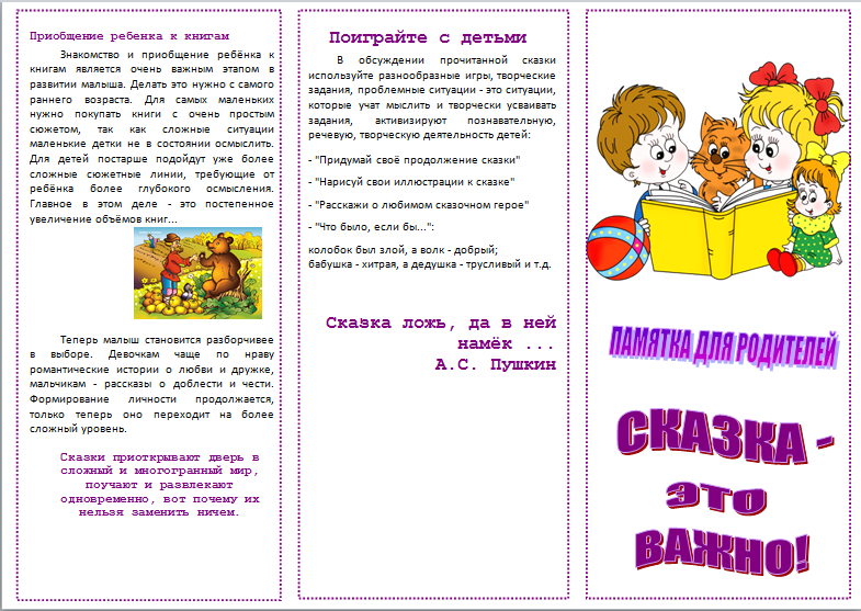 Памятка для родителей "Сказка - это важно" (Просмотр)